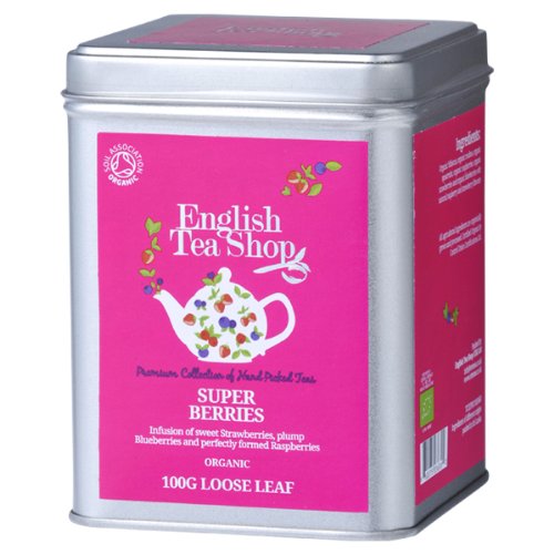 Introducing English Tea Shop Organic Super Berries – 100g Loose Leaf Tea in a Tin! This delicious blend of organic fruits and herbs is the perfect way to start your day. Our unique blend of organic hibiscus, elderberries, rosehips, and blackcurrants is sure to tantalize your taste buds.