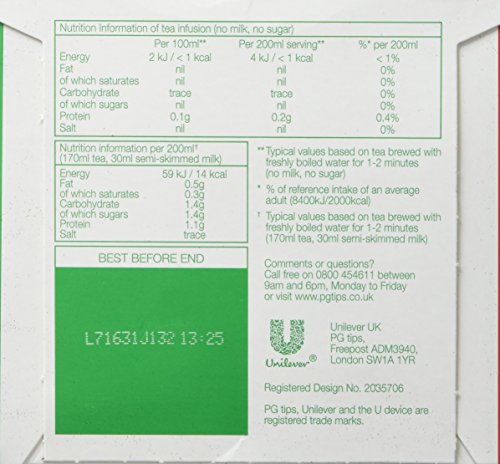 PG tips Original Biodegradable Pyramid Breakfast Tea Bags are the perfect way to start your day. Enjoy a delicious cup of tea with the assurance that you are doing your part for the environment. With 480 teabags in each pack, you can enjoy a cup of tea every day for months to come.