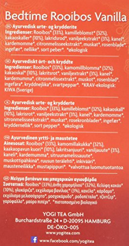 Yogi Teas Ayurvedic Organic Bedtime Rooibos Vanilla 17bags (PACK OF 1) is a great way to end your day. Not only does it help you relax and unwind, but it also offers a variety of health benefits. The herbs in this blend are known to help reduce stress, improve digestion, and boost immunity. Plus, the caffeine-free rooibos makes it a great choice for those looking for a gentle way to relax before bed.